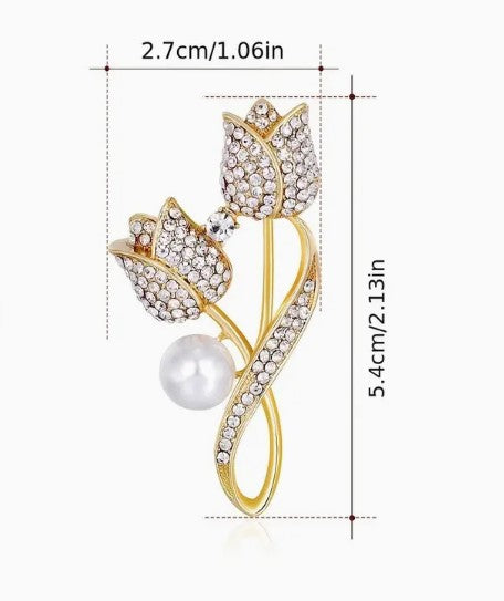 Fashion Jewelry- Tulip flower Brooch pin with Rhinestone crystals