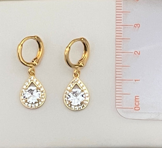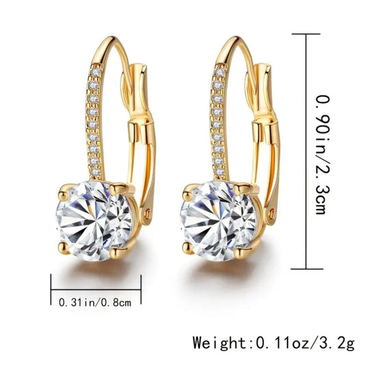Fashion jewelry- Round Zircon Crystal Drop - Gold Color Dangle Hoop Earring