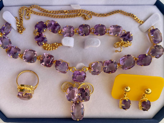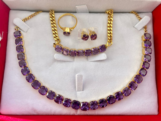 Natural Amethyst Necklace, Bracelet, Earring and Ring Set