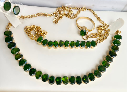 Natural Diopside necklace, Bracelet, Earring and Ring Set