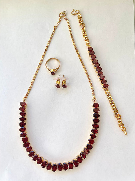 Natural Garnet Necklace, Bracelet, Earring, Ring Set