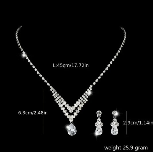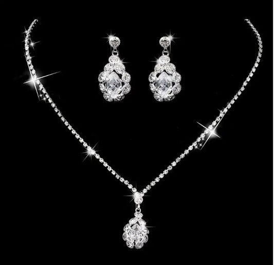 Fashion Jewelry- Waterdrop Rhinestone Zircon Necklace and earring set.