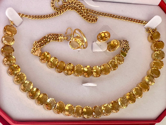 Natural Citrine Necklace, Bracelet, Earring and Ring Set